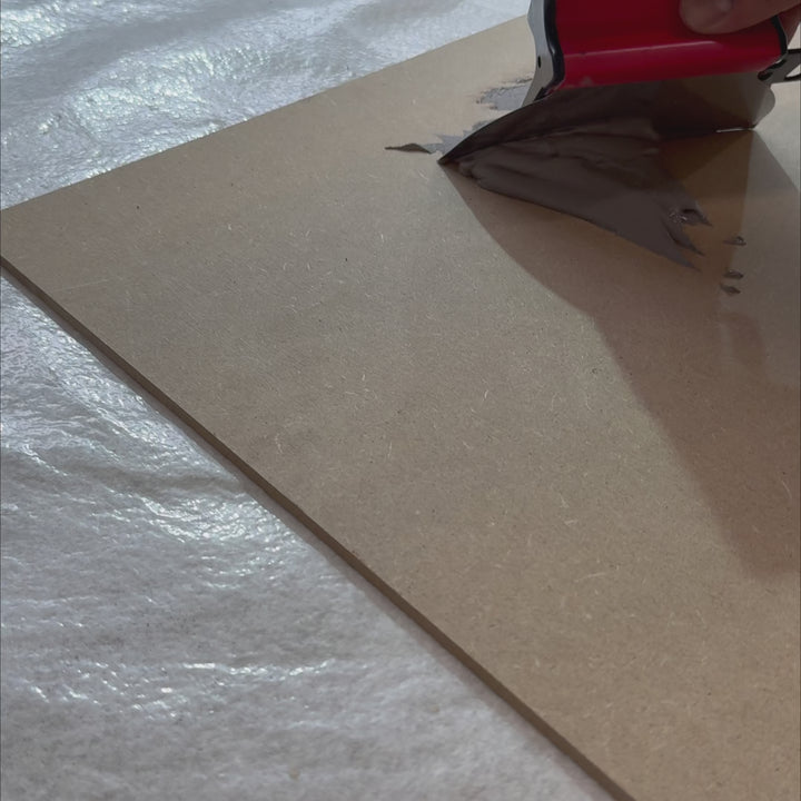 Wij raden daarom aan om een stuk plaatmateriaal van hout te gebruiken zoals MDF, OSB, Underlayment, Multiplex etc. Het beste is zuigend plaatmateriaal.