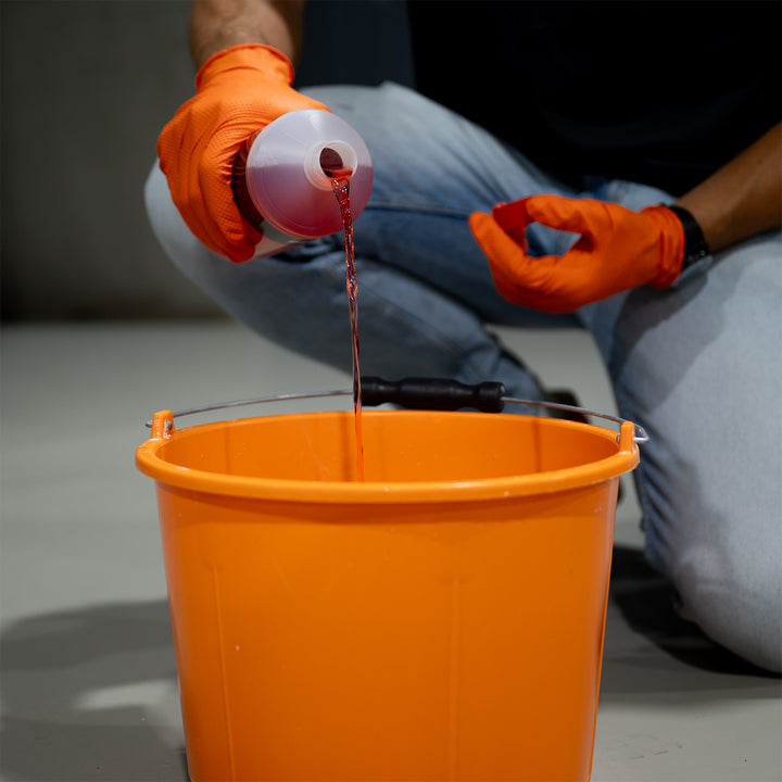 Voor dagelijks schoonmaakwerk gebruik je de verhouding 1:20 (50 ml PU Reiniger op 1 liter water). Dit is krachtig genoeg voor licht vervuilde oppervlakken en veilig voor vrijwel alle materialen.