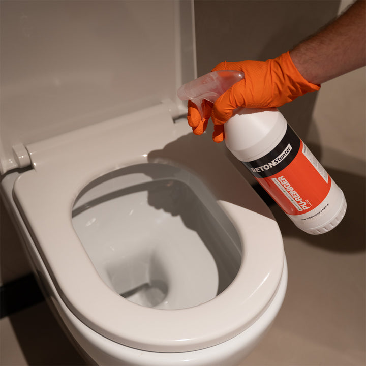 Spuit met de spraydop direct op de vlek of het oppervlak, laat altijd 20 seconden intrekken, en neem vervolgens af met een microvezeldoek. Voor extra kracht kun je het vuil loswerken met een harde borstel.